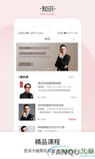 品观知识:实用的线上技能培训服务,化妆品人的私人专属商学院,包含叶光、武清林以及其他资深行业大咖精品课程,涉及CS渠道管理、店铺经营、BA培训等多个方面。碎片化时间,随时随地更高效的获取知识服务,每天10分钟,两周帮您解决一个行业痛点,让您生意更轻松。