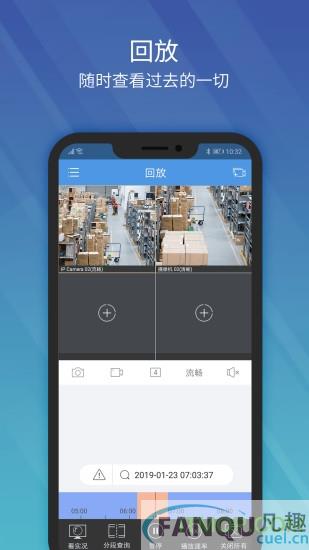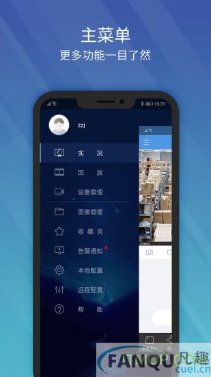 EZView手机版,可通过网络直接接入宇视科技视频监控产品,满足您在手机上查看实况、云台控制、回放录像、推送告警、管理云端设备等需求。