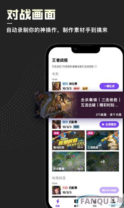 4.【对战画面】自动录制你的神操作,制作素材手到擒来。