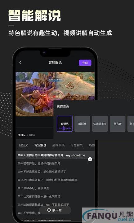 2.【智能解说】特色解说有趣生动,视频讲解自动生成。