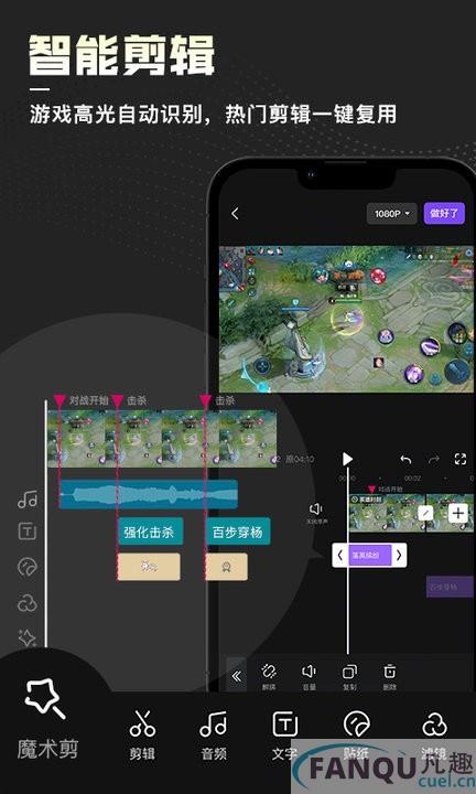 1.【智能剪辑】游戏高光自动识别,热门剪辑一键复用。