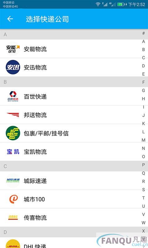 3、支持包括申通、中通、圆通、韵达、顺丰、EMS、中国邮政、天天、汇通、京东、全峰等在内的全国几十家快递品牌。