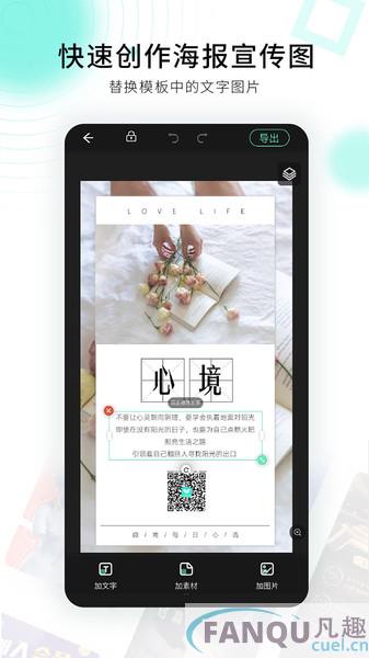 在软件上面用户可以看到非常多的海报案例,每一个海报案例都有着属于自己的想想法,用户在观看这些案例的时候可以随时进行一个学习,来得到属于自己的一个海报设计案例,然后根据平台上面的教程来制作属于自己的海报进行发布。在加上里面还有着非常多的场景提供给你选择,让你可以轻松制作出各种高质量的海报,来让自己可以轻松成为一个海报设计师。