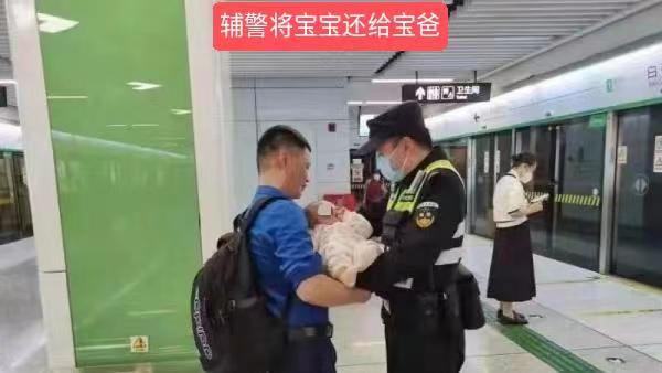 当天11时许,辅警赵乾龙正在站厅里巡逻,一名男子对身着警服的赵乾龙说:“警官,我有点不舒服,可否帮我抱一下我的小孩,我上一下洗手间。”话音刚落,男子立马将孩子递给赵乾龙,放下背包后急匆匆地奔向洗手间。这个从未抱过小孩的辅警瞬间变身“奶爸”,小心翼翼地抱着孩子等待男子归来。