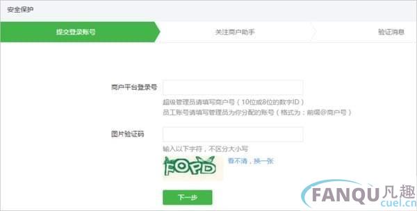 a、提交登录账号,在页面内输入商户平台登录账号与图片验证码;