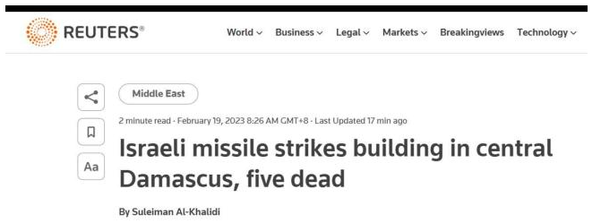 以色列未对本次袭击事件立即发表声明。此次袭击也是叙利亚因强震遭受人员伤亡和财产损失以来遭遇的首次袭击。