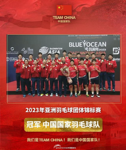 北京时间19日晚,2023年亚洲羽毛球混合团体锦标赛决赛在阿联酋迪拜举行。经过四局激战,中国队以总比分3:1战胜韩国队获得冠军,实现该项赛事的两连冠。