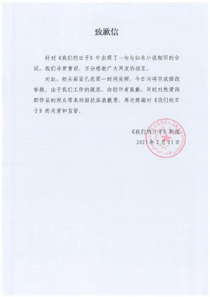 《我们的日子》抄袭!官方未给出正面答复