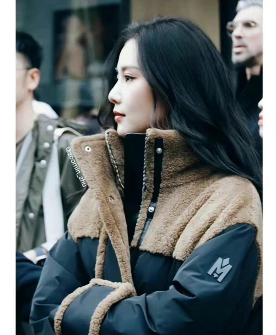 刘诗诗长发披肩,穿着十分保暖。她穿着棕色棉服,两只手交叉站着望向远方,就算穿着臃肿的衣服,气质也非常淡雅。