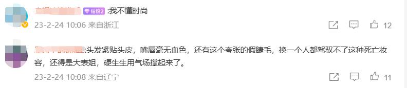 然而颇具争议的就是刘雯此次走秀时的妆容。她将睫毛涂成了白色,素颜出镜,十分朴素。镜头里的刘雯脸颊凹陷,颧骨突出,嘴唇没有血色,看起来非常苍白。在看到刘雯走秀造型时,网友也在评论区纷纷发表了自己的看法,有网友认为,刘雯头发紧贴头皮,嘴唇毫无血色,还有这个夸张的睫毛,换一个都驾驭不了这种死亡妆容,还得是大表姐,硬生生用气场撑起来了,也有网友直言: 好难看 ,不过也有人认为很特别,看来对于刘雯的妆容,大家也是见解不一了。