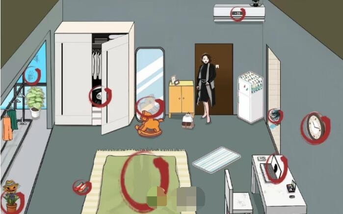 1。汉字找茬王-一个人住,找出家里你害怕的10个地方:人印、绣花鞋、木马、手印、-26度、头发、紊乱的时钟、电脑屏幕、死亡(按住衣柜右门三秒钟)和稻草人(把南瓜拖到盆栽上)