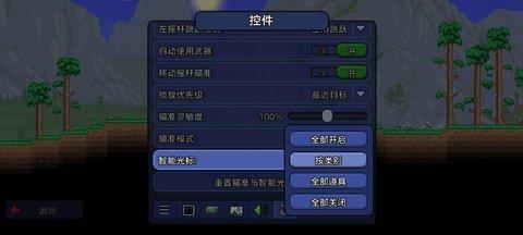 这样就可以自动打开和关闭了(有很多道具都是默认关闭的,比如火把,药水这些,打开瞄准和使用就可以直接滑动右摇杆从而自动放置火把和使用药水)