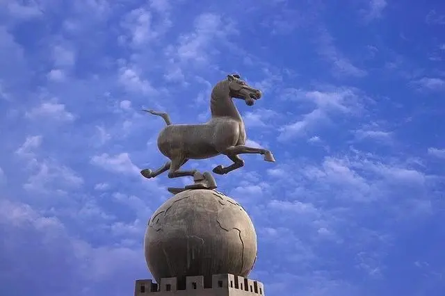 马踏飞燕于1969年出土于甘肃省武威市雷台汉墓。它是一匹奔跑的马,后腿踩着一只飞燕,形象生动,富有动感。它被认为是中国古代雕塑艺术的稀世之宝,代表了东汉时期的最高艺术成就。它也被选为中国国家旅游局的标志,象征着中国文化的自信和开放。