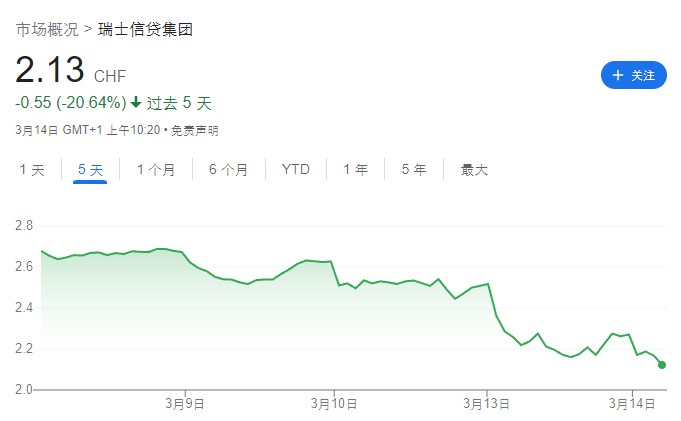 致使该机构的经营状况空前恶化,股票价格发生断崖式下跌,3月15日当天下跌幅度超过30%甚至触发熔断, 甚至还引发了全球银行股的又一轮大跌。