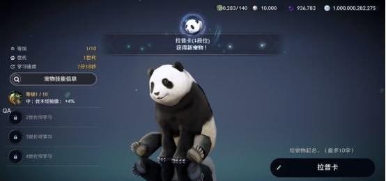 接下来就是驯服熊猫了,驯服成功就可以查看熊猫属性了。