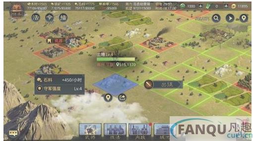 玩家可以选择扫荡最近的二级野地,2分钟一个来回。升到8级后,就去买兵(1600兵力),然后开打3级野地,野地等级越高,可得到的奖励也越多。