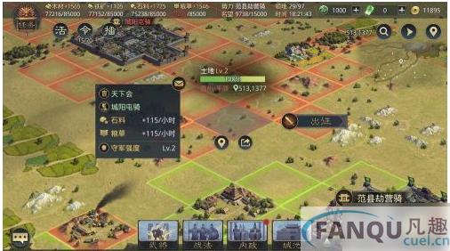 让武将驻守土地,遇到敌军可进行战斗,更好的让武将成长升级,如图所示