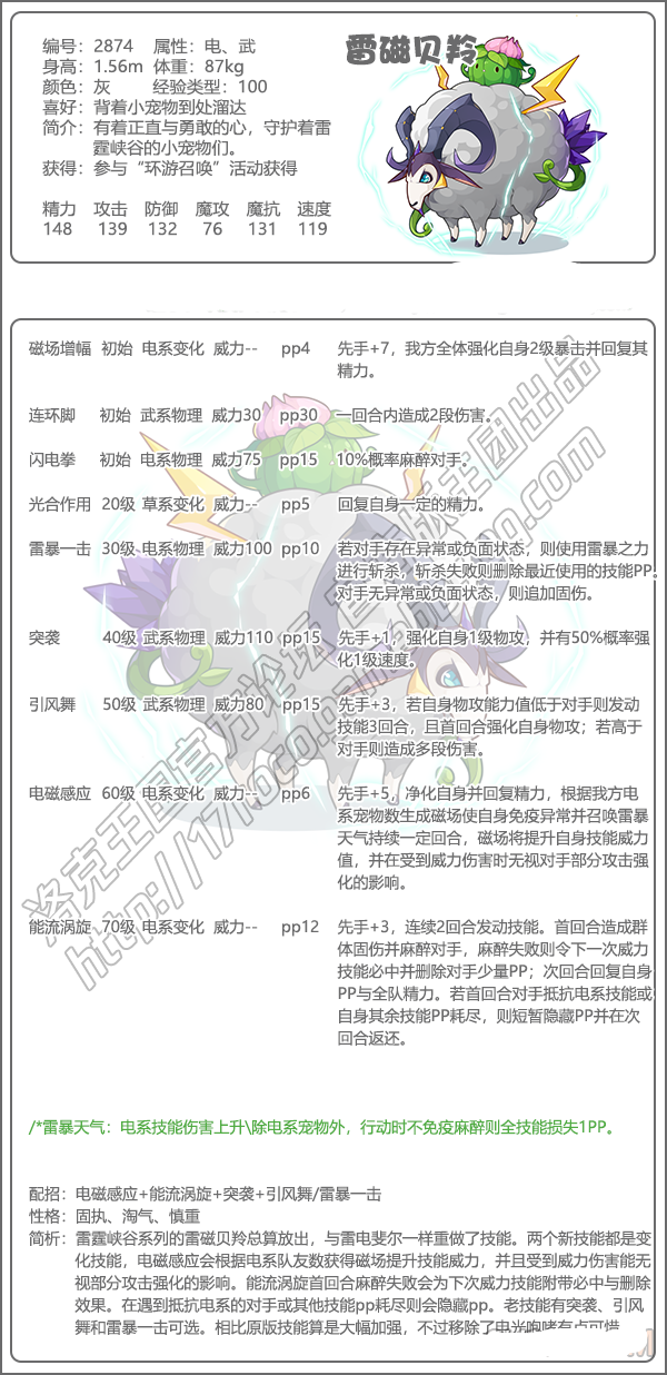 "洛克王国"雷慈贝灵技能表图鉴
