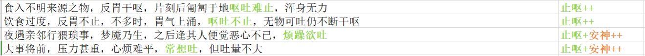 关键词“呕吐难止”“想吐”“欲吐”