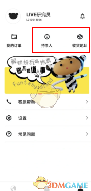 1。首先下载打开纷玩岛app,提前填写持票人和收货地址。