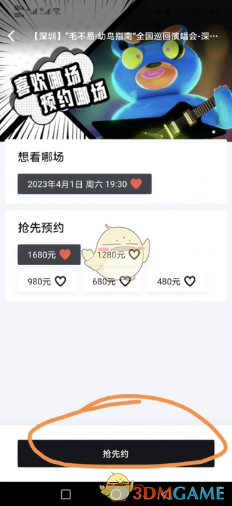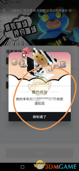 2。然后点击你想去的演唱会场次,预约,预约成功后显示会收到开票通知。