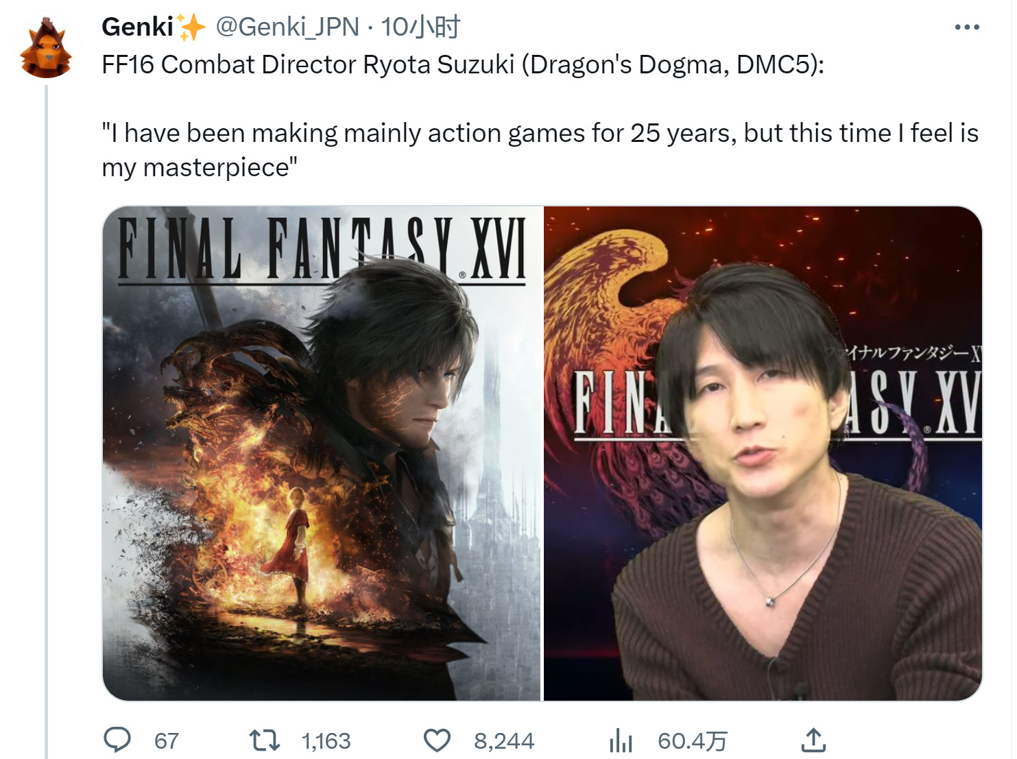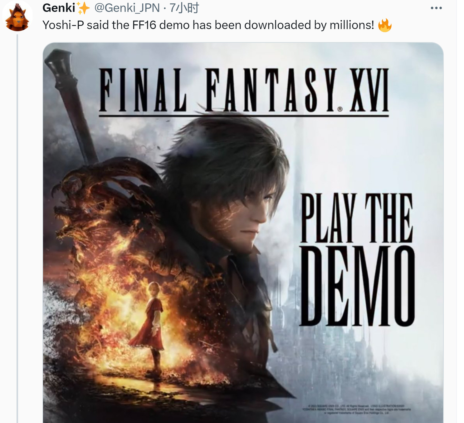 吉田提到“最终幻想16”的体验版已经下载了几百万次