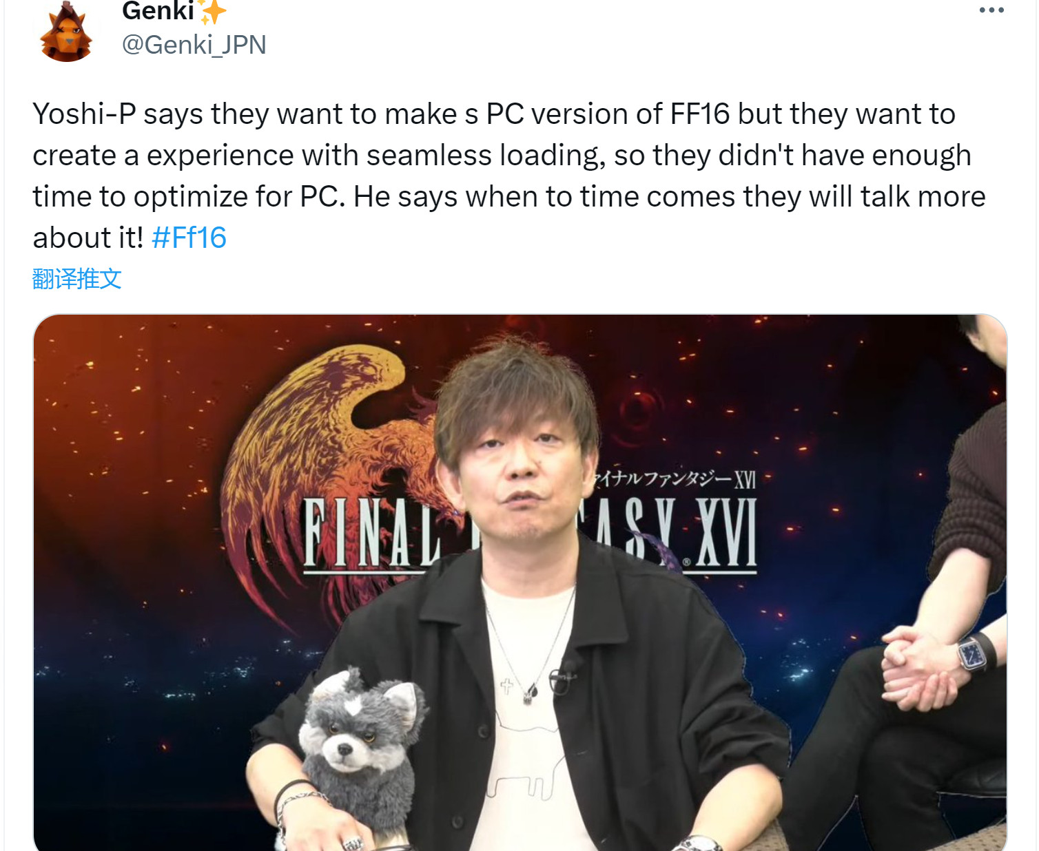 吉田还提到,他们想做一个PC版的最终幻想16,但是又想打造无缝加载的体验,所以没有足够的时间针对PC进行优化。