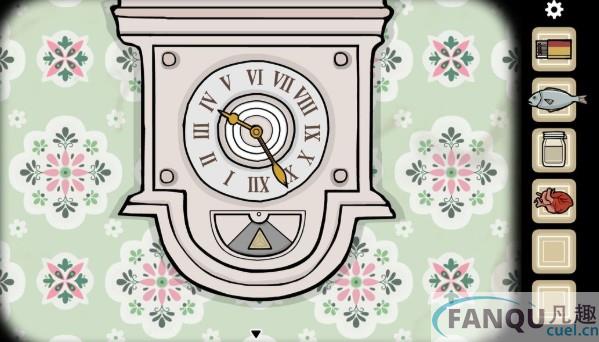 来到时钟这边,时间我们可以调节。但下面的柜子被锁上了,打开需要三角形的钥匙。