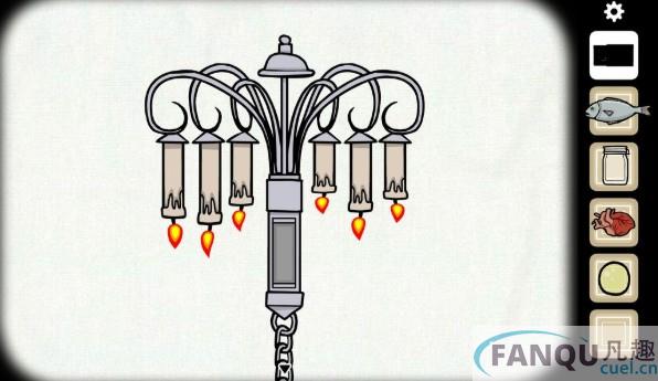 蜡烛必须按照一定的顺序才可以成功点燃。如果把蜡烛从左到右标号为1-6。那么点燃的顺序为“4-6-3-5-1-2” 成功点然后,在暗格里得到一颗弹珠。
