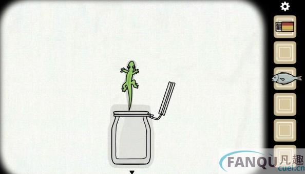 回到正常的房间后,利用玻璃瓶抓住到处乱跑的壁虎。