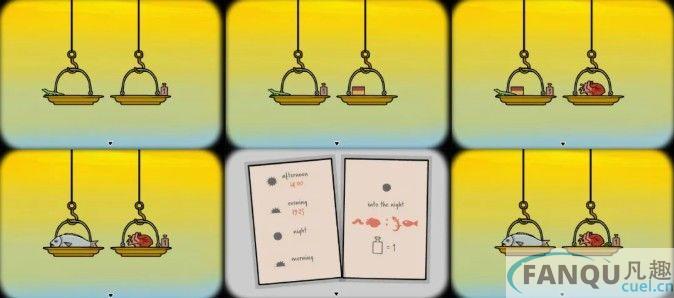 来到镜子这边,天上的飘来四片云彩。移动云彩到特定位置,云彩会变幻形状。移动四片云彩,让他们分别展现心脏、壁虎、虫子、咸鱼这四种形态,四片云彩会消失。出现另一片云彩。