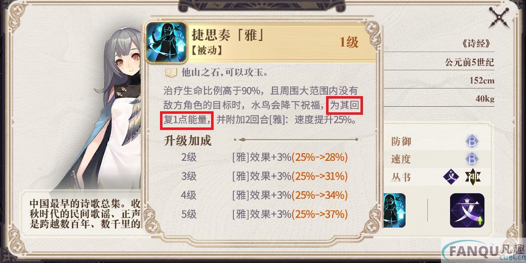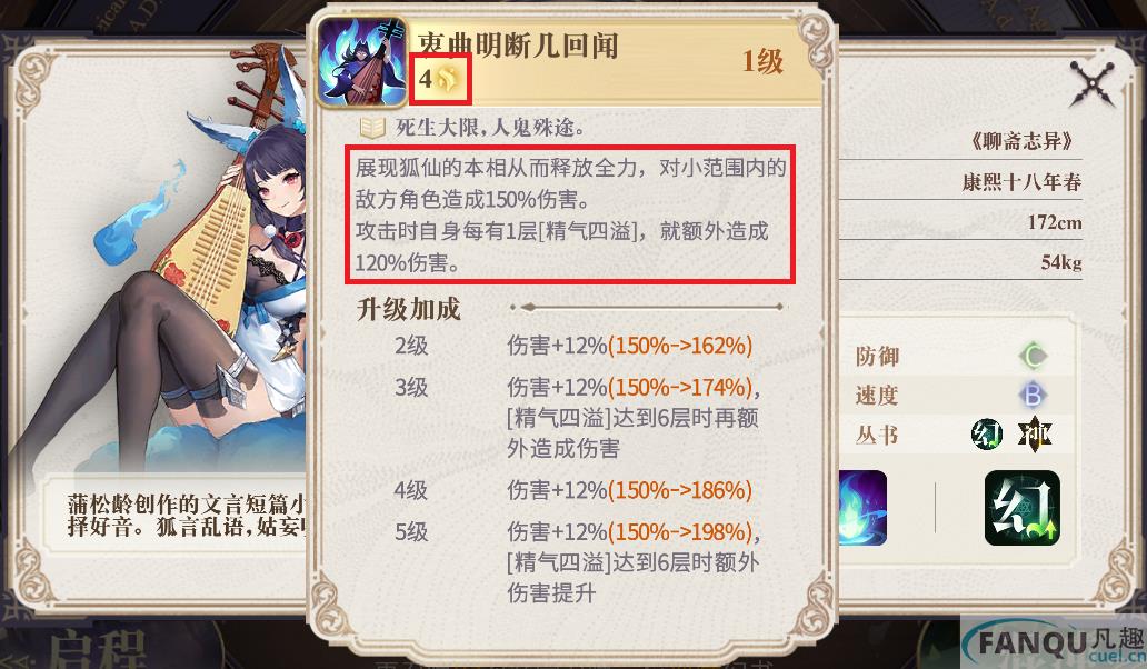 婴宁的被动会在我方发动消耗能量的技能后获得一层增伤BUFF,当她发动书界技能时,便会根据增伤BUFF的数量提升自己的伤害。初始状态婴宁发动一次技能的倍率就达到了510%,是游戏中爆发最高的幻书了。不过婴宁的技能决定了她只能是阵容唯一输出,如果你抽到了她,就努力帮她创造最好的输出环境吧。