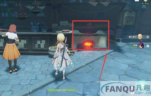 1、如上图,食材加工可以在蒙德猎鹿人酒馆或者璃月万民堂旁边的灶台进行;