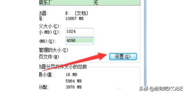 6、进入高级界面,找到下方的【虚拟内存】选项,点击右侧的【设置】
