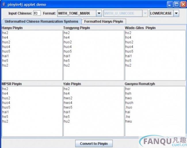 2、支持转换到汉语拼音,通用拼音, 威妥玛拼音(威玛拼法), 注音符号第二式, 耶鲁拼 法和国语罗马字