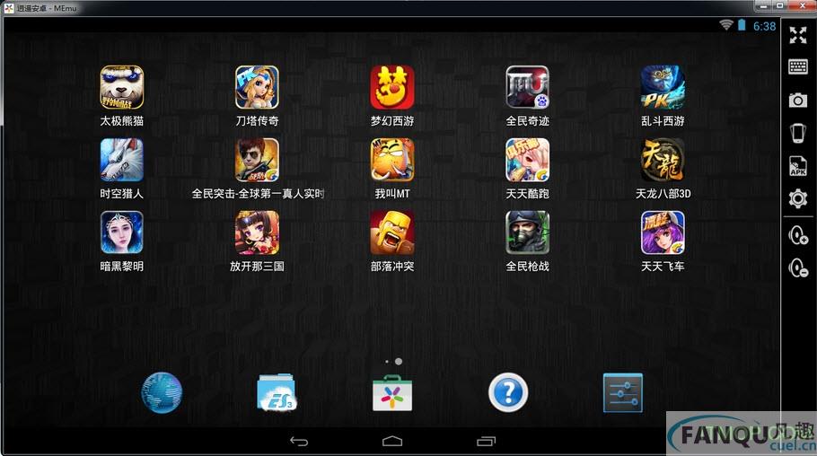3.键盘操控(方便触屏游戏使用)、摇一摇、截取屏幕、我的电脑、关闭所有应用、apk快速安装;