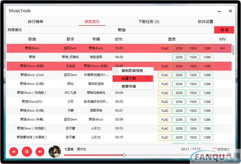 2、支持下载QQ音乐m4a、MP3普通品质、MP3高品质、ape和flac格式;