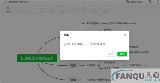 点击导出可弹出导出格式选项框,导出可选择PNG图片和PDF文件两种格式。