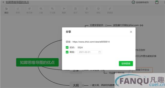 支持把思维导图文件以网页链接形式分享出去,他人可以直接打开链接浏览,并支持对链接设置访问密码和有效期,安全又方便