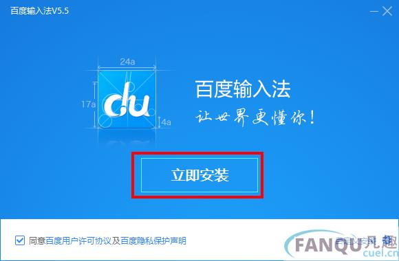 1、在本页面下载百度输入法官方安装程序,双击运行。