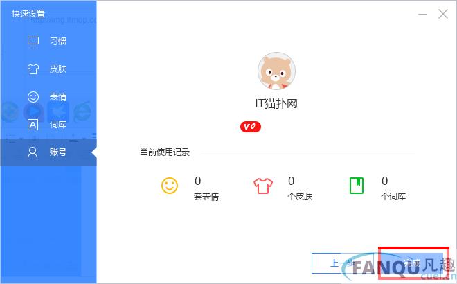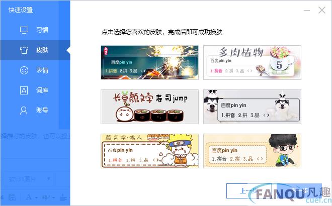 4、接下来还可以为您的输入法安装一款精美的皮肤吧,可以直接选择推荐的皮肤,也可以等会搜索自己感兴趣的。另外也可以选择表情以及词库信息。