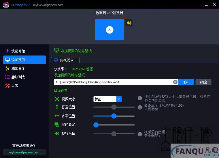Windows动态壁纸工具MLWapp是专为Windows打造的一款动态壁纸工具,用户可以使用这款软件将自己喜欢的视频设置成桌面壁纸,并添加各种喜欢的音乐以及其他的设置功能,软件的兼容性非常的强,支持多种格式的修改,可以帮助你打造一个更具特色的Windows桌面。