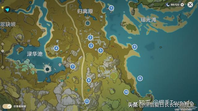 8、右上的山顶的悬崖上(靠近归离原遗迹)。