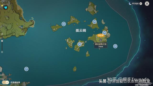 51.右下角无人小岛的柱子上(冰元素铺路走过去)